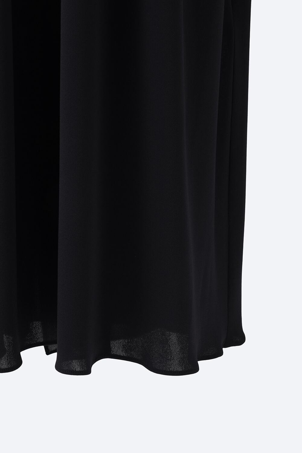 発色性、清涼感に優れた高級素材トリアセテートを使用しています。天然素材の風合いを残しながら、合成繊維の持つ清涼感と美しいドレープ性を併せ持つ素材感です。ベアトップのサマードレスでありながら、後身頃の切り替えから出ているドレープ部分が肩を覆い、前で結ぶことのできるデザインになっています。2WAYのデザインを楽しめるサマードレスになっております。